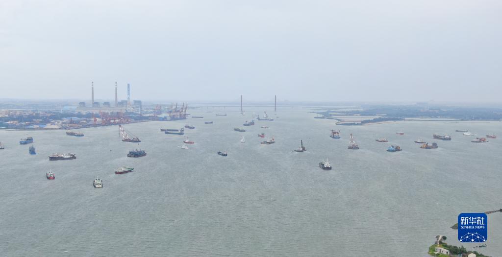 這是7月17日拍攝的在廣東湛江龍王灣水域錨泊防&的船隻(無人機照片)。