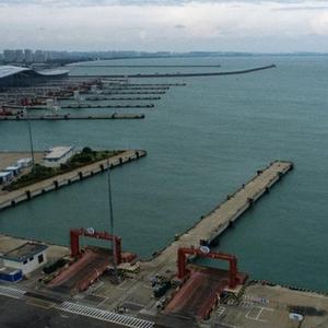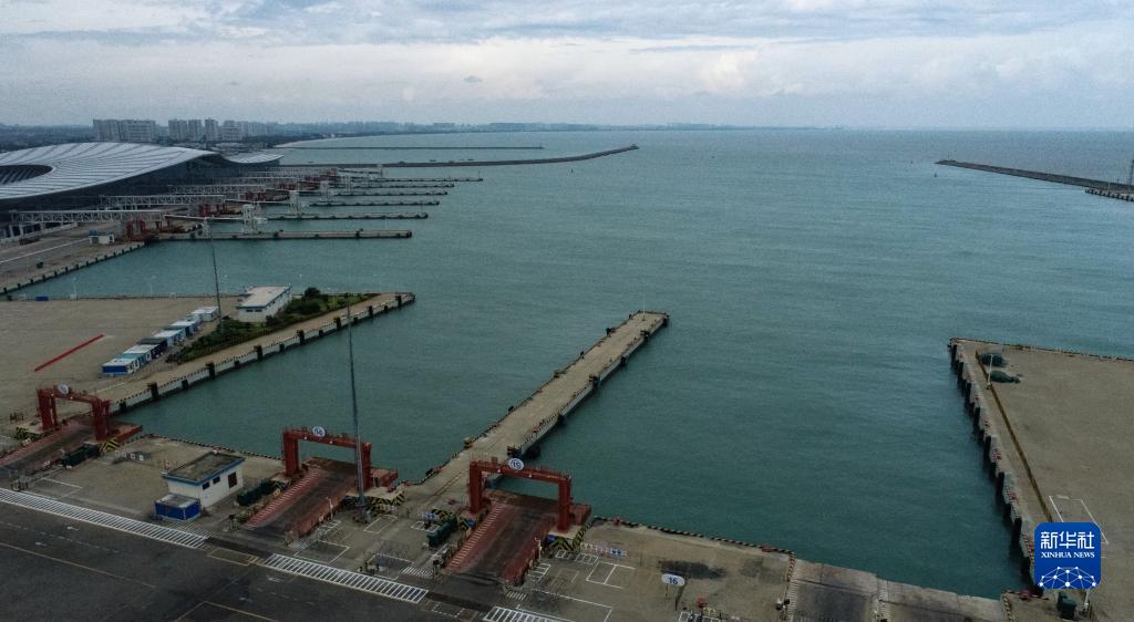 7月17日拍攝的空蕩蕩的海口新海港(無人機照片)。