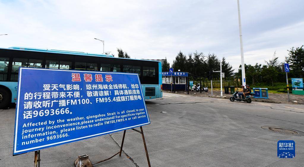 這是海口市新海港外的琼州海峽停航信息提示牌(7月17日攝)。