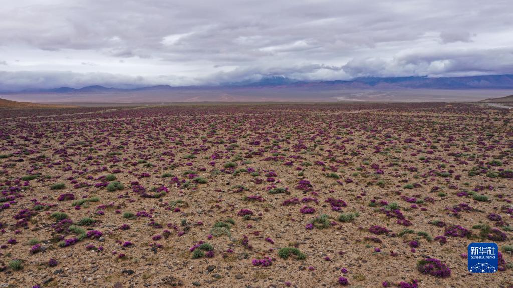 7月11日在新疆阿爾金山國家級自然保護區拍攝的刺葉柄棘豆(無人機照片)。
