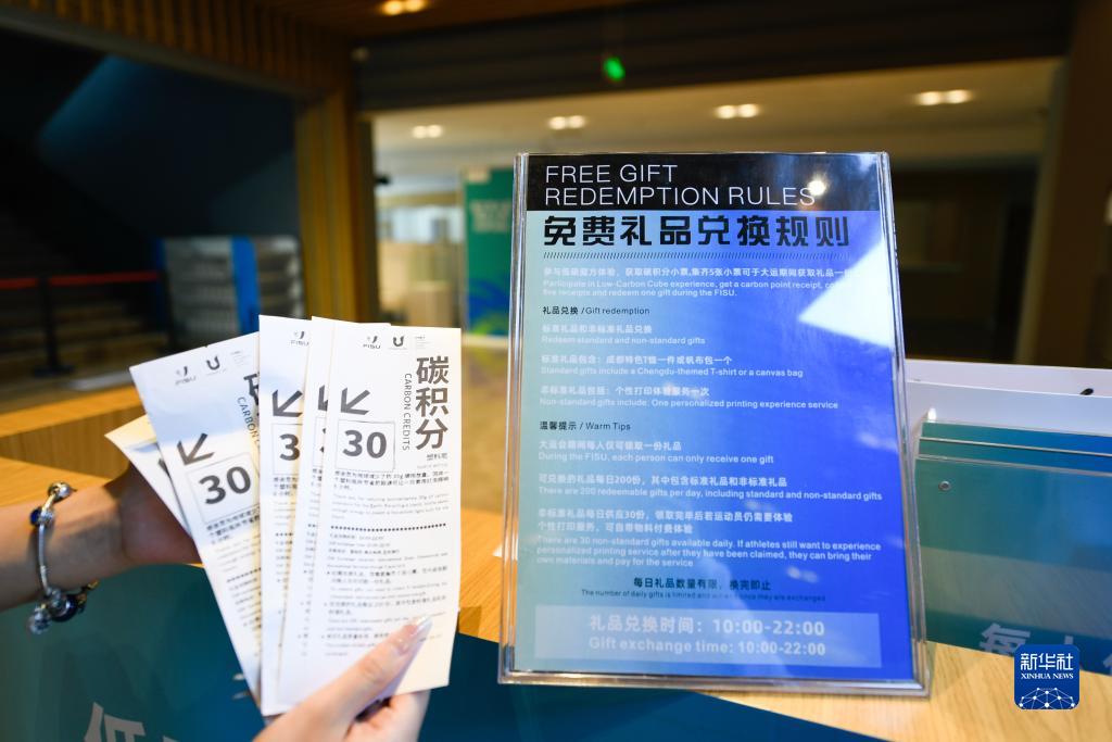 7月16日,在大運村藝術中心內,工作人員展示“低碳魔方”兌換的“碳積分”小票。
