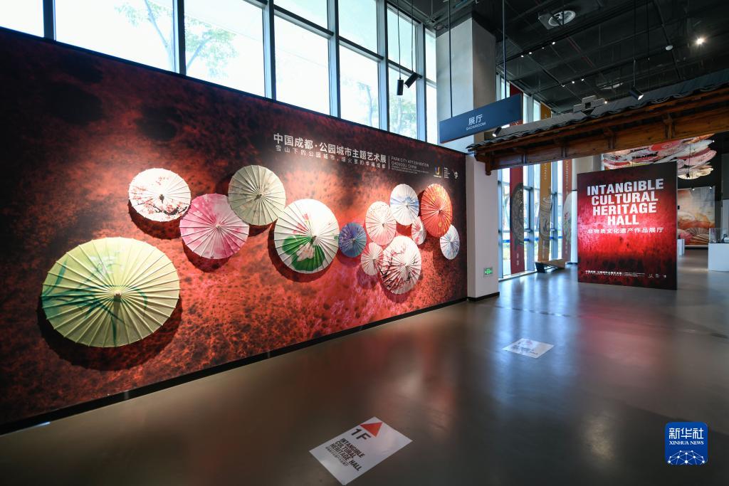 這是7月16日在大運村展覽中心內拍攝的“中國成都·公園城市主題藝術展”一角。