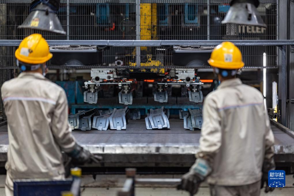 7月16日,在位於重慶市兩江新區的重慶至信實業集團有限公司熱壓車間,工作人員等待搬運下線零件。