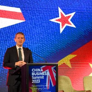 7月17日,新西蘭總理希普金斯在新西蘭最大城市奧克蘭舉行的第九屆新西蘭中國商業峰會上發表演講。