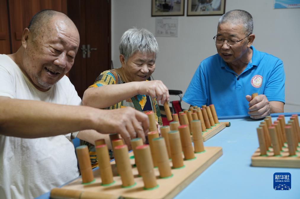 7月17日,在正定縣塔元莊村勁松老年公寓,老人在活動室進行益智訓練。
