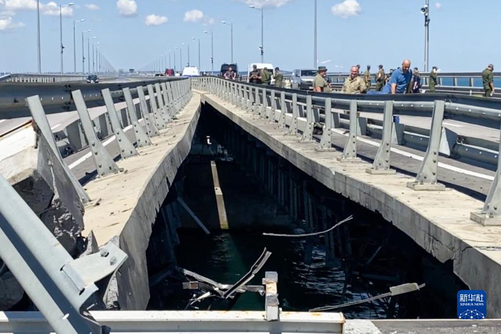 這是7月17日拍攝的克裏米亞大橋受損區域(視頻截圖)。
