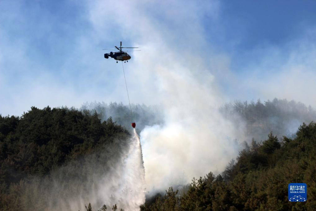 7月17日,一架直升機在土耳其哈塔伊省貝倫地區撲滅山火。