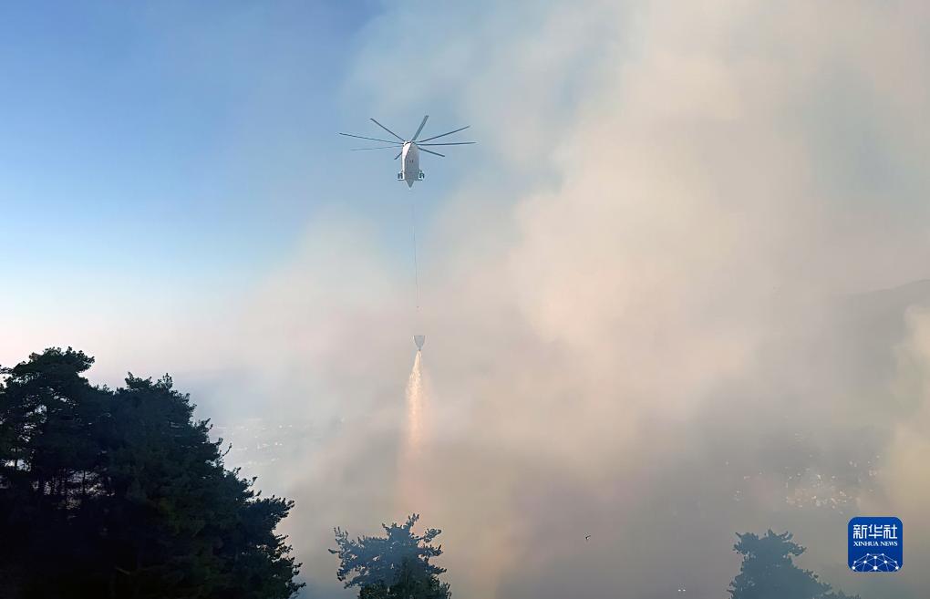 7月17日,一架直升機在土耳其哈塔伊省貝倫地區撲滅山火。