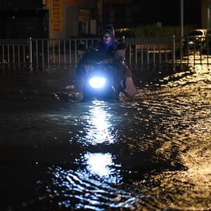 7月17日晚,在廣東湛江海濱大道北,車輛由於道路積水被困。
