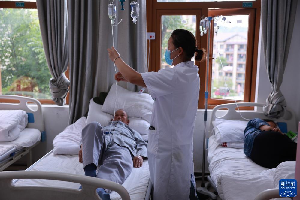 柏楊林街道社區衞生服務中心,醫護人員為患者治療(7月13日攝)。