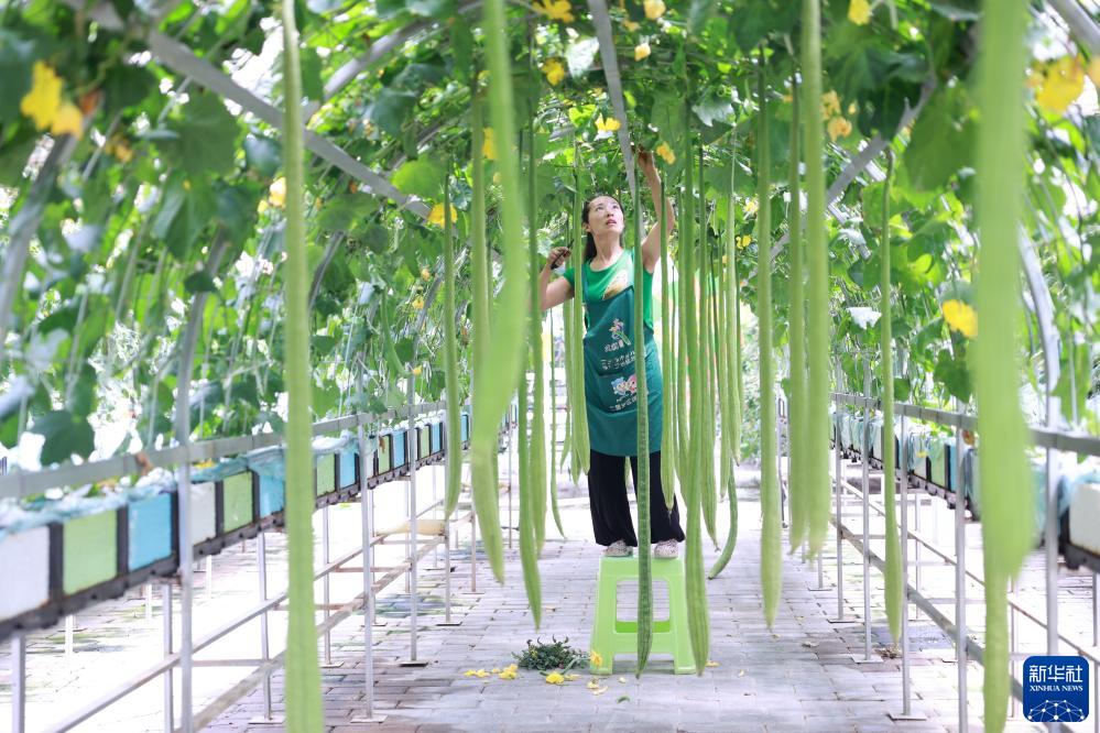 柏楊林街道生態農業觀光園,搬遷居民在勞作(7月13日攝)。