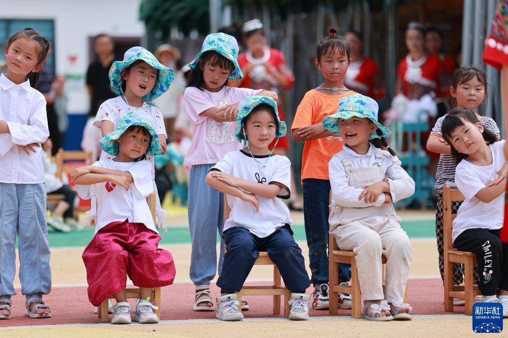 柏楊林街道的七星關區第三幼兒園,孩子們在表演節目(7月13日攝)。