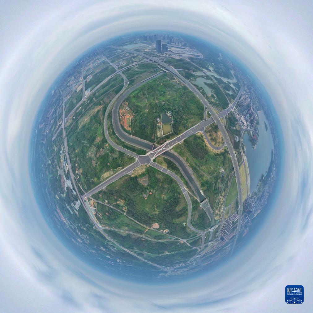 這是流經中國西部博覽城和西部(成都)科學城的鹿溪河(無人機全景照片,6月13日攝)。