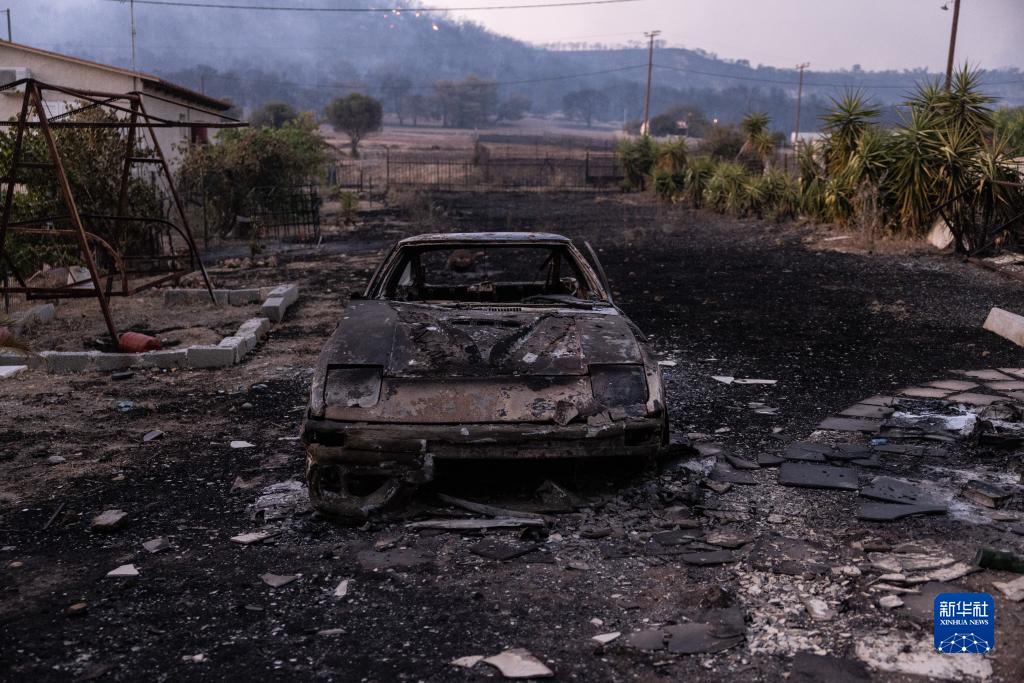 這是7月17日在希臘雅典郊外盧特拉基附近拍攝的被燒燬的汽車。