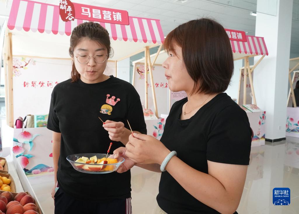 7月18日,觀眾在2023北京·平谷鮮桃季“土特産”市集現場品嘗桃子。