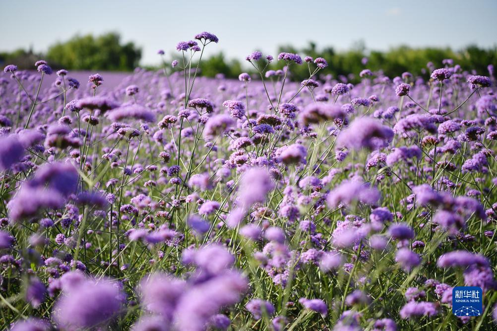 寧夏薰衣草莊園盛開的馬鞭草(7月15日攝)。