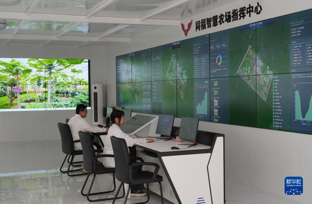 7月18日,在正定縣塔元莊同福智慧農場,員工在指揮中心平台查看農場運行情況。