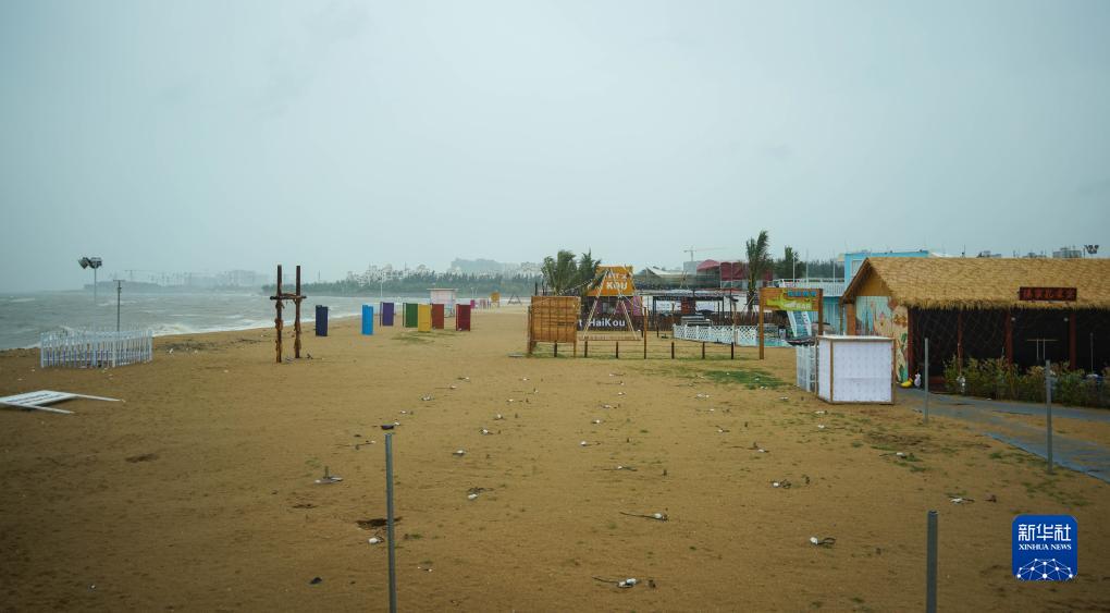 為防範颱風,海口市白沙門文創市集的攤位已全部撤離(7月17日攝)。