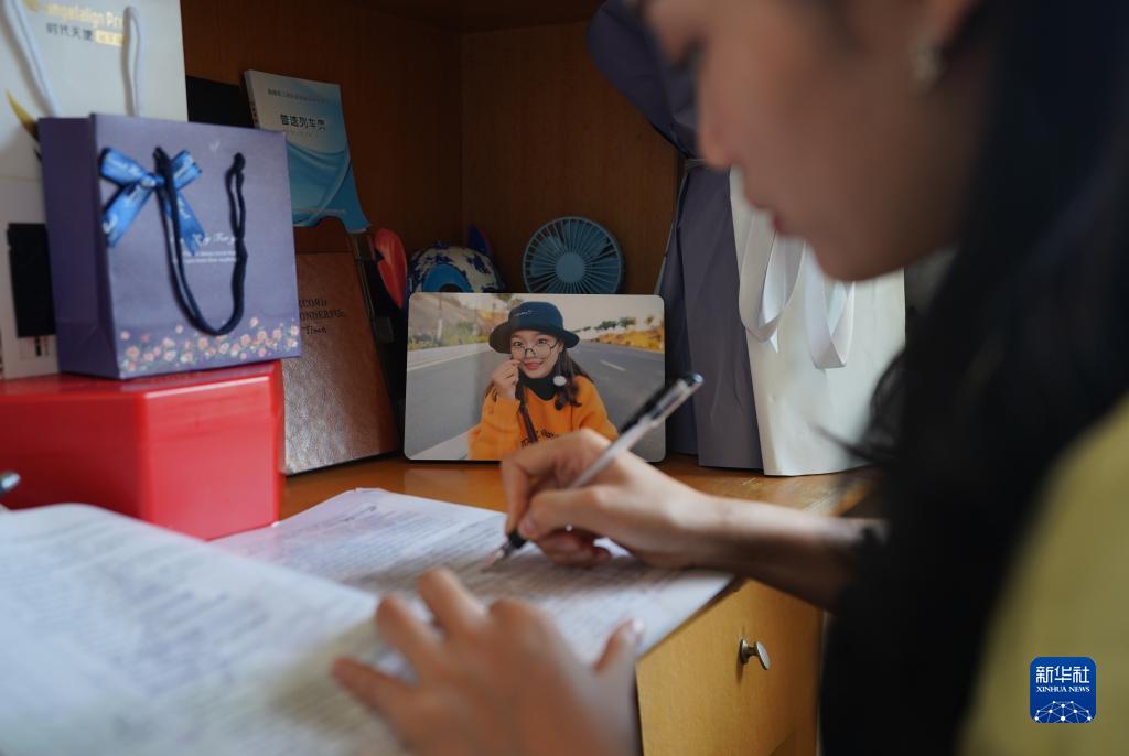 依波逢在位於昆明的住處學習老撾語(7月15日攝)。