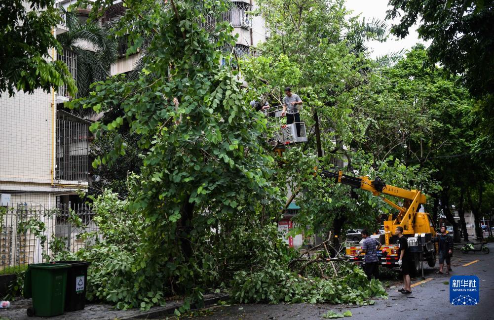 颱風“泰利”過境後,廣東湛江於7月18日11時將防風應急響應降為Ⅲ級。目前,湛江市區已解除颱風預警信號,積極開展倒伏樹木清理工作,盡快恢復生産生活秩序。