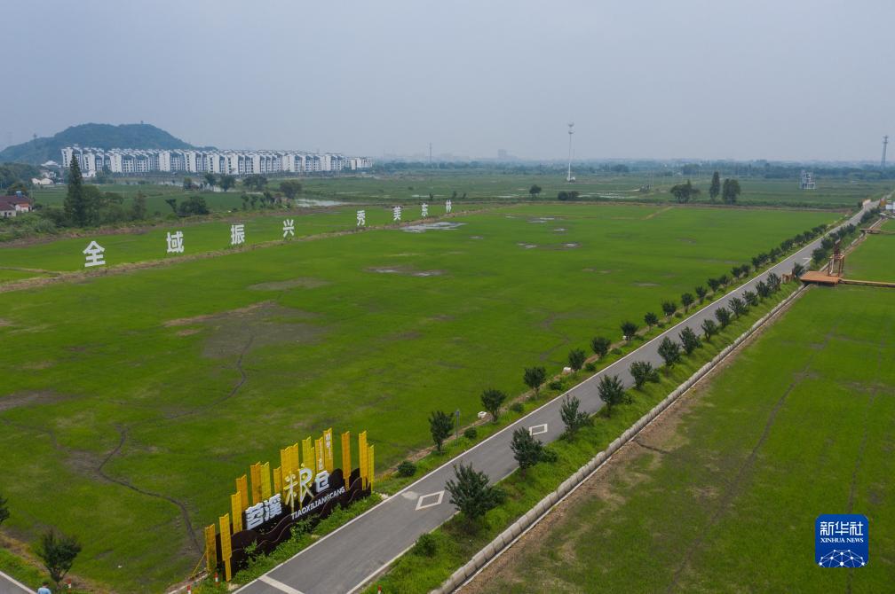 7月19日拍攝的湖州市東林鎮東華村經過萬畝方集中連片整治後的連片農田,田裏種植了水稻(無人機照片)。
