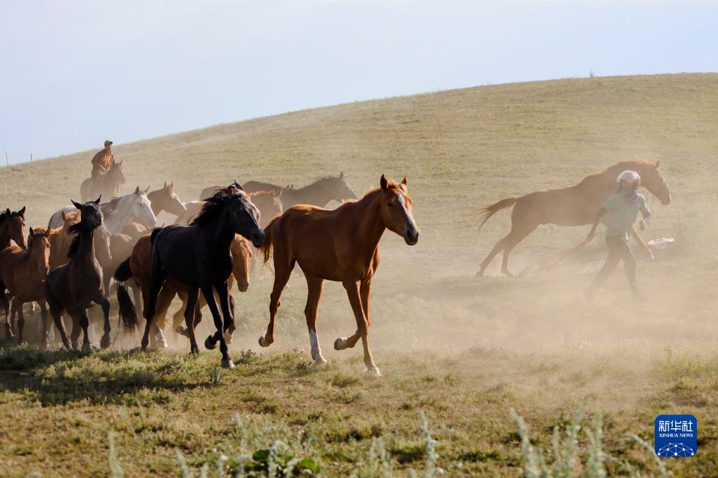 牧民在新疆伊犁哈薩克自治州昭蘇縣一處草地放牧(7月16日攝)。