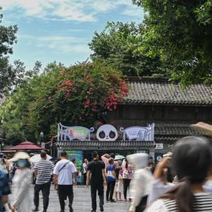 這是7月14日拍攝的開在成都市寬窄巷子景區的一家成都大運會特許商品零售店。