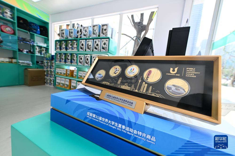 這是7月19日在成都市一家成都大運會特許商品零售店內拍攝的成都大運會徽章。