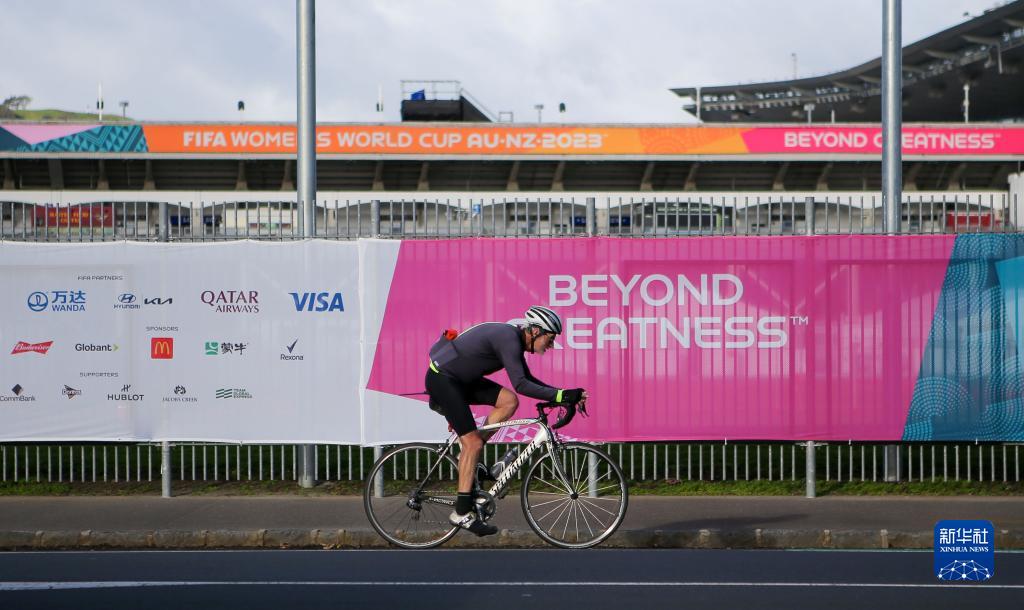 7月17日,在新西蘭奧克蘭,一名騎行者騎車經過伊甸公園球場。