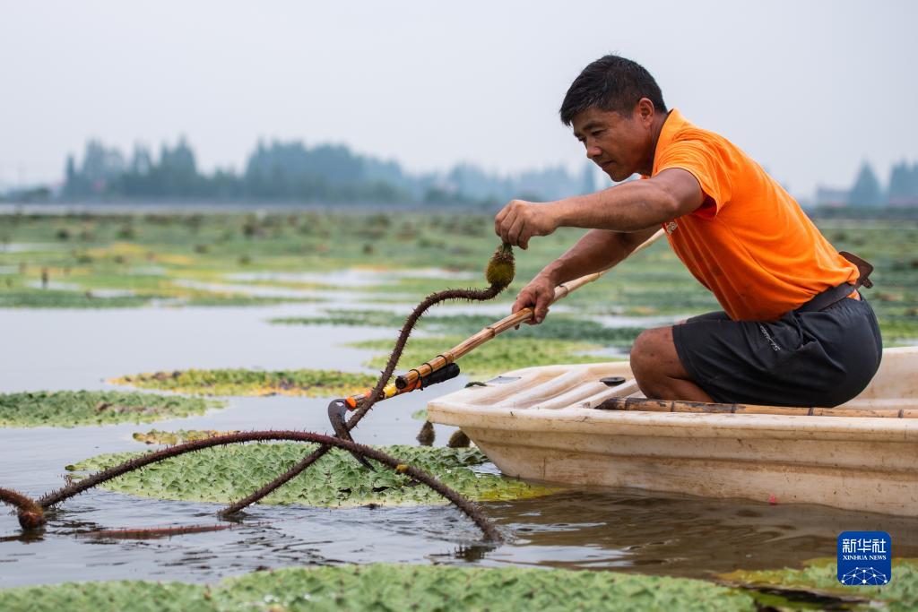 7月19日,在南縣麻河口鎮曹家鋪村,村民在采收芡實。