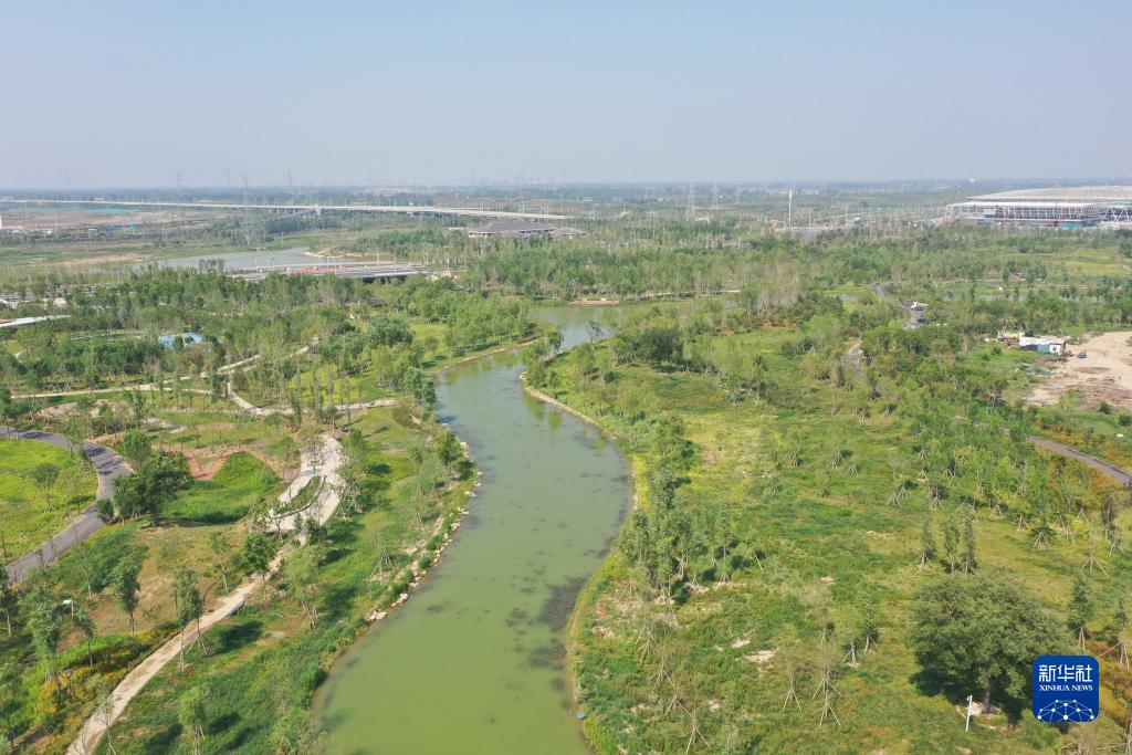 河北雄安新區啟動區中央綠谷及東部溪谷生態廊道一角(7月18日攝,無人機照片)。