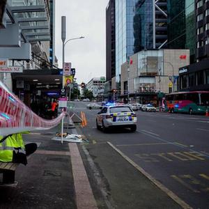 7月20日,在新西蘭奧克蘭,警方封鎖槍擊事件現場附近道路。