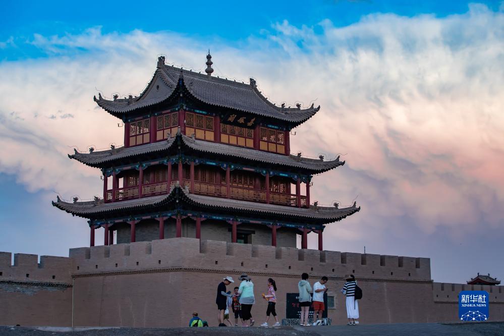 當日,位於甘肅河西走廊的嘉峪關市在一場疾風驟雨後,天空放晴,遠處祁連雪山與嘉峪關關城交相輝映,構成一幅壯美畫卷。
