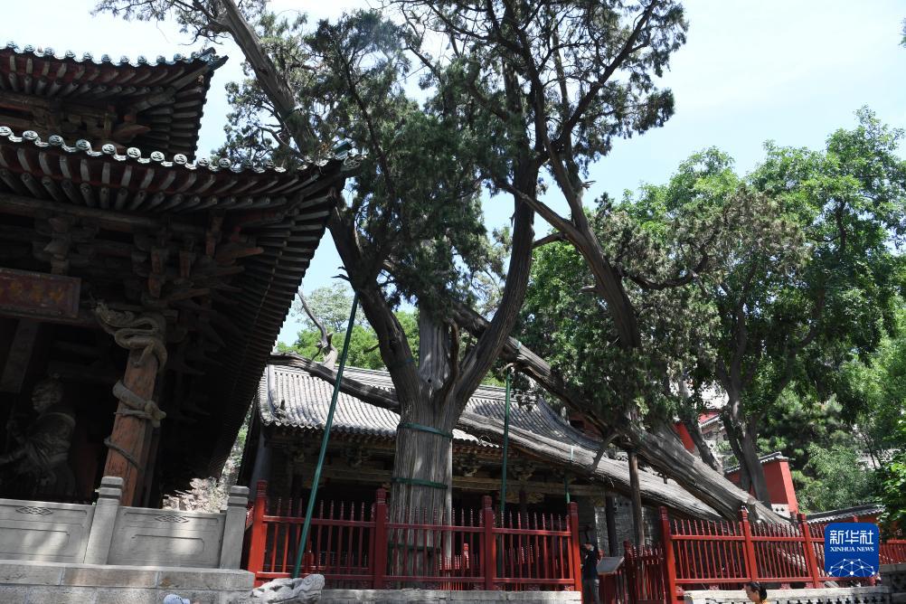 晉祠聖母殿旁樹齡3000多年的周柏(6月16日攝)。