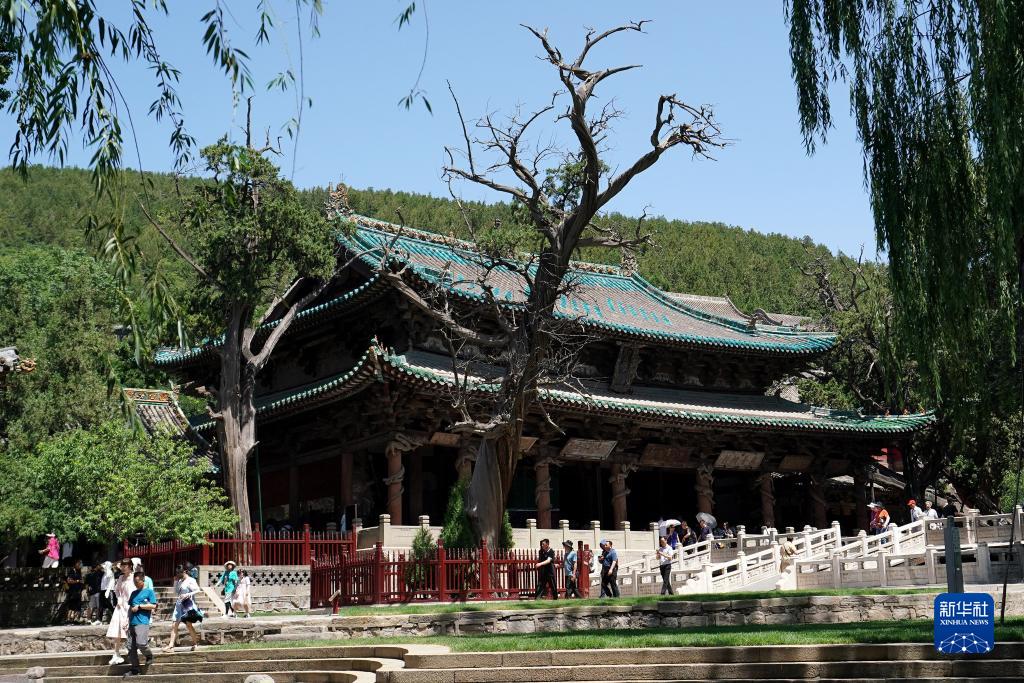 晉祠聖母殿和旁邊的古柏(7月4日攝)。