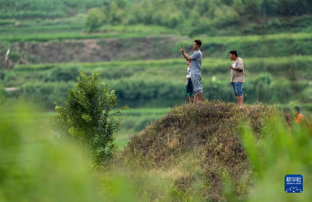 7月19日,人們在雲南省普洱市江城縣的一處農田旁觀看亞洲象。