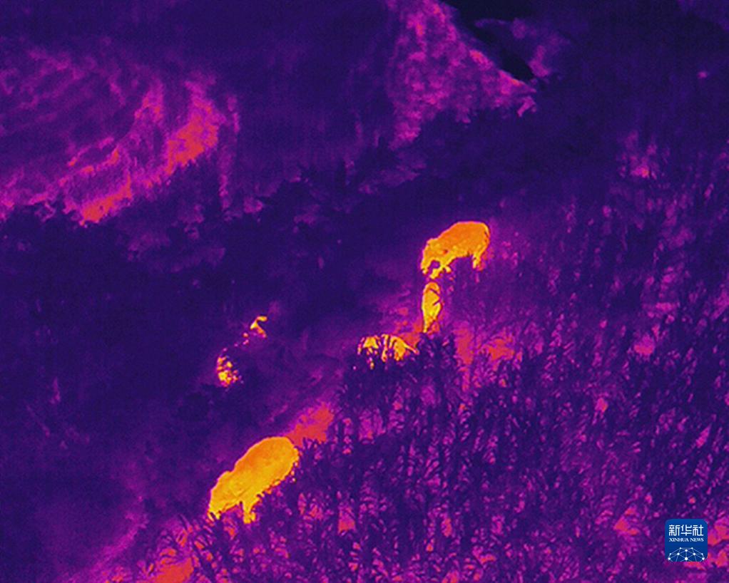 7月19日深夜,用無人機的熱成像攝像頭拍攝的亞洲象。