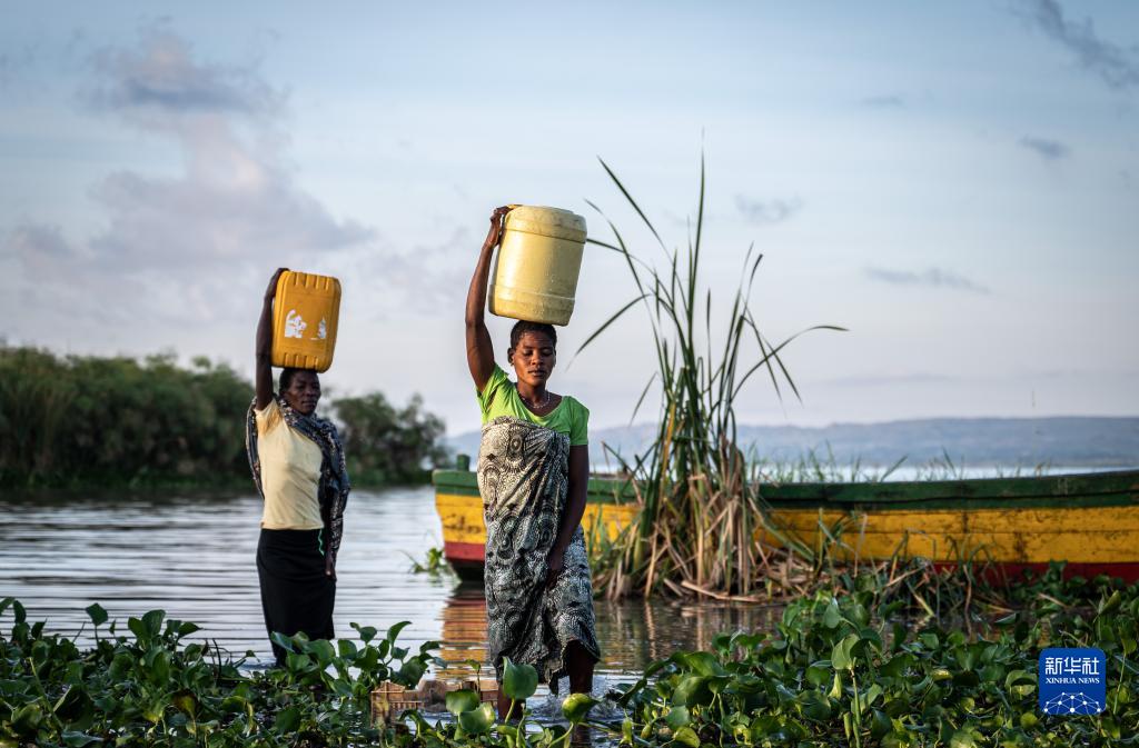 6月12日,村民在坦桑尼亞姆萬扎省維多利亞湖畔打水。在姆萬扎省輸水工程尚未覆蓋區域,部分居民仍使用舊有方式取水。