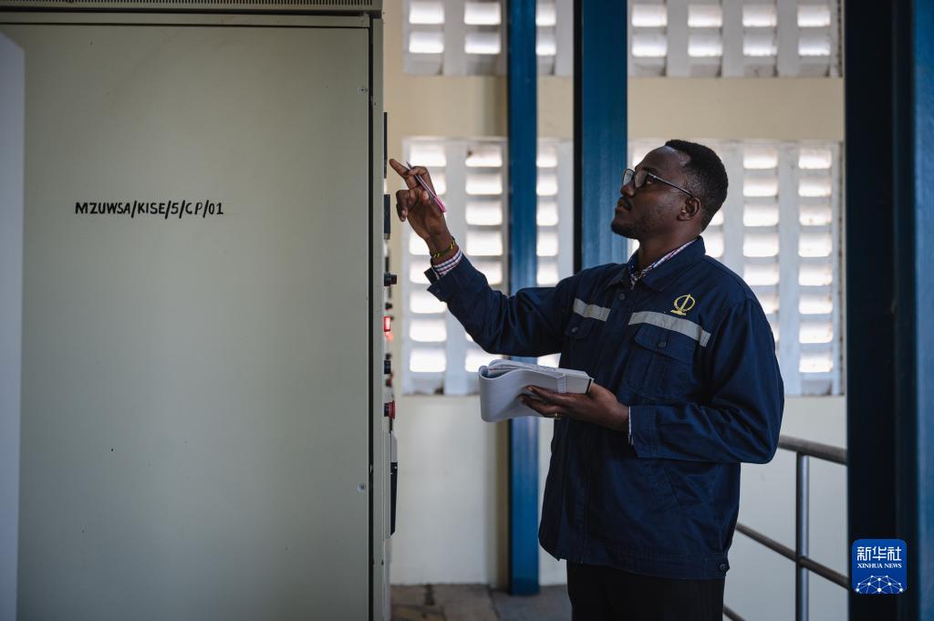 6月11日,在坦桑尼亞姆萬扎省奇塞凱,凱爾文在供水項目增壓泵站內進行電路檢測工作。