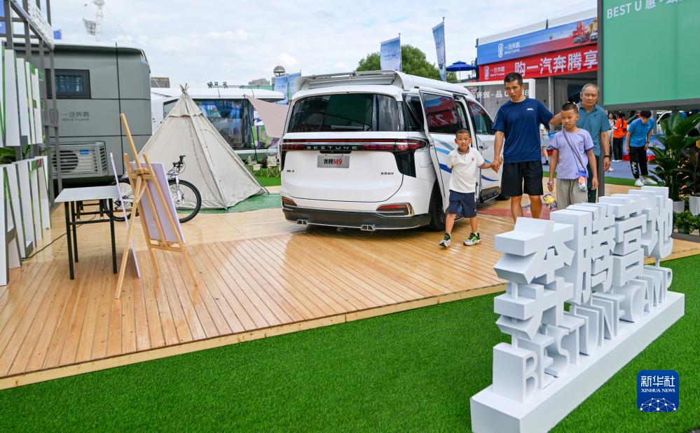 7月17日,參觀者在長春汽博會上的房車沉浸式體驗區參觀。