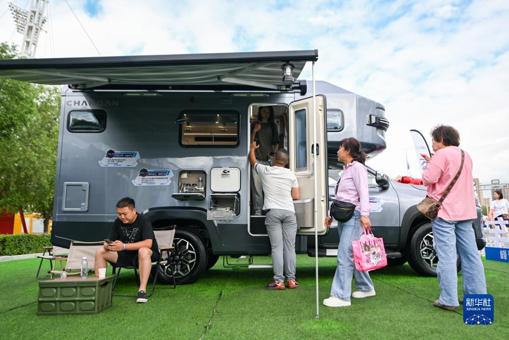 7月17日,參觀者在長春汽博會上的房車沉浸式體驗區參觀。