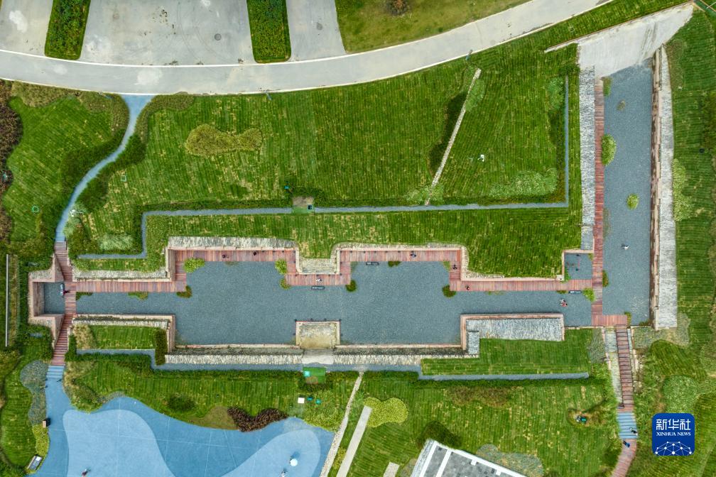 7月20日拍攝的成都東華門遺址公園外場遺址區內原狀展示的明代蜀王府水道遺跡(無人機照片)。