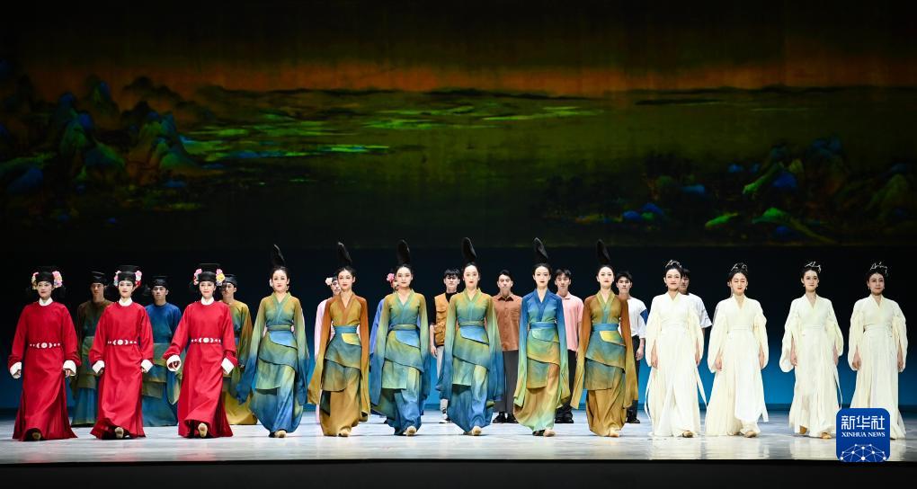 7月20日,中國東方演藝集團演員在烏魯木齊文化中心大劇院表演舞蹈詩劇《只此青綠》。