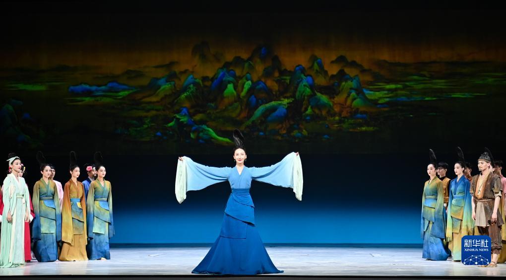 7月20日,中國東方演藝集團演員在烏魯木齊文化中心大劇院表演舞蹈詩劇《只此青綠》。
