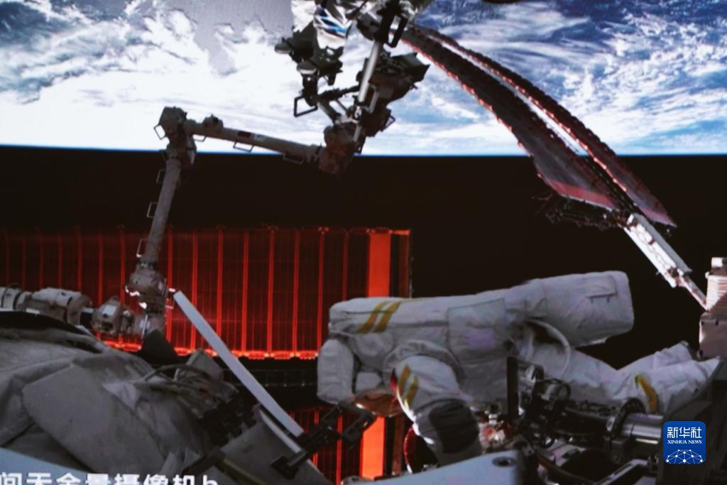 這是在北京航天飛行控制中心拍攝的神舟十六號航天員朱楊柱開展艙外操作的畫面(7月20日攝)。