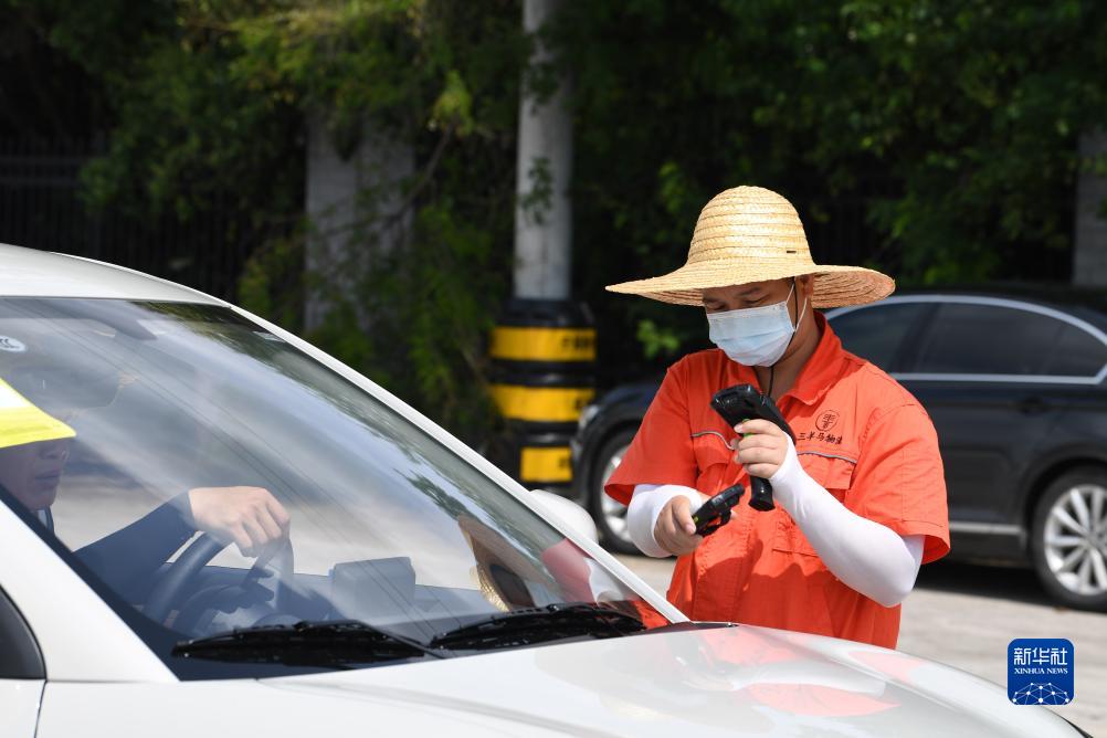 7月19日,在廣西柳州雒容汽車物流基地,工作人員對即將裝運的小汽車掃描登記。