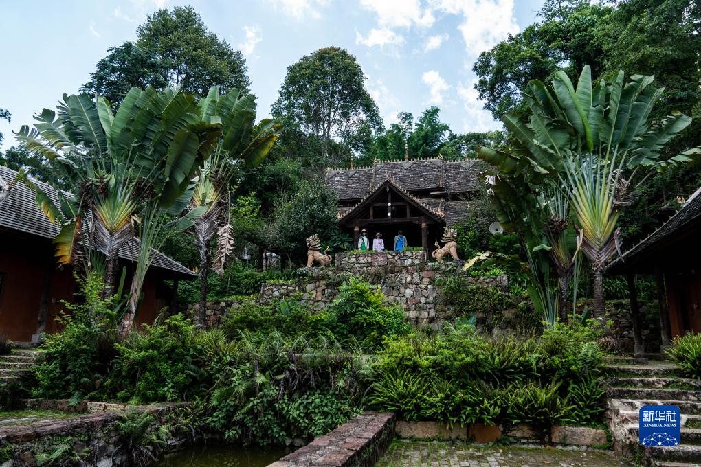 游客在瀾滄縣惠民鎮翁基古寨參觀(7月18日攝)。