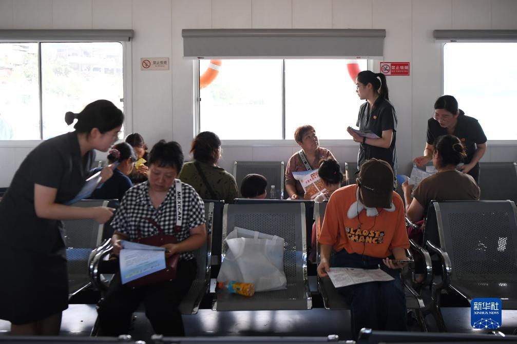 7月19日,安化縣人民法院幹警(前左一、後右一、後右二)在柘溪客運碼頭進行法制宣傳。