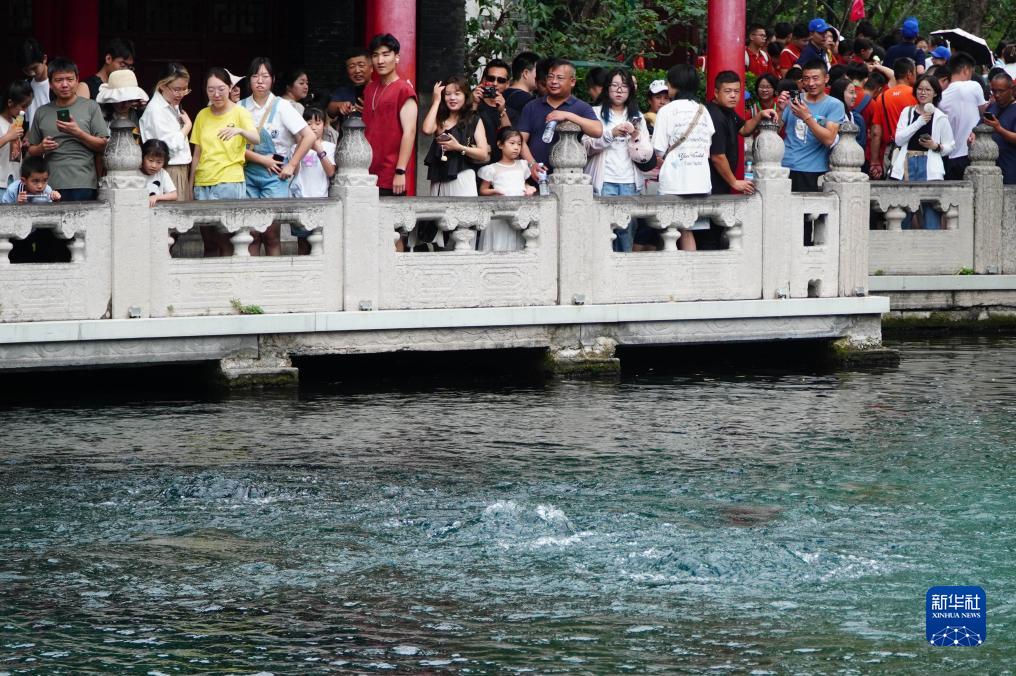 進入夏季以來,位於山東省濟南市的趵突泉吸引了大量暑期旅游的游客前來觀賞。