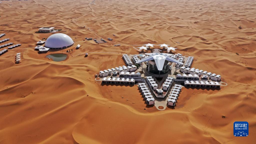 這是7月20日在騰格裏沙漠拍攝的星星酒店(無人機照片)。